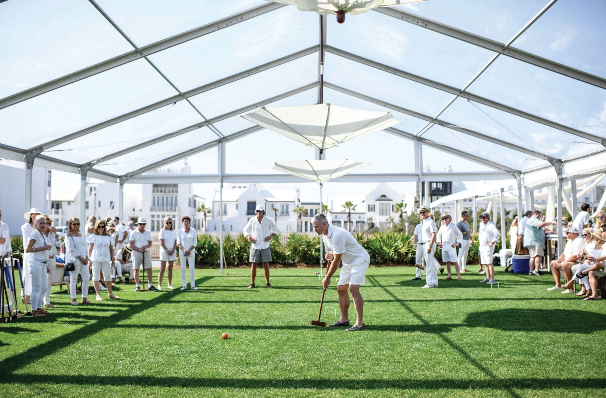 As a final flourish on Sunday, the event concluded with Rosé & Croquet, a relaxing afternoon on the lawn combined with a healthy dose of competition among the teams. “Our homeowners get into the spirit,” Miller says. “They come out and practice ahead of time, everyone wears all white, and we had some homeowners this year who created their own sweaters or t-shirts with their names on them. That’s probably my favorite day, because everybody’s just relaxed and ready to enjoy their rosé and play croquet.”