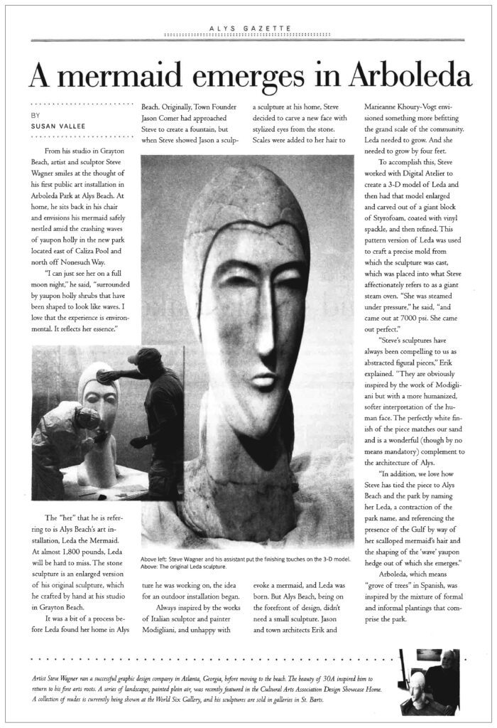 “In addition, we love how Steve has tied the piece to Alys Beach and the park by naming her Leda, a contraction of the park name, and referencing the presence of the Gulf by way of her scalloped mermaid’s hair and the shaping of the ‘wave’ yaupon hedge out of which she emerges.”