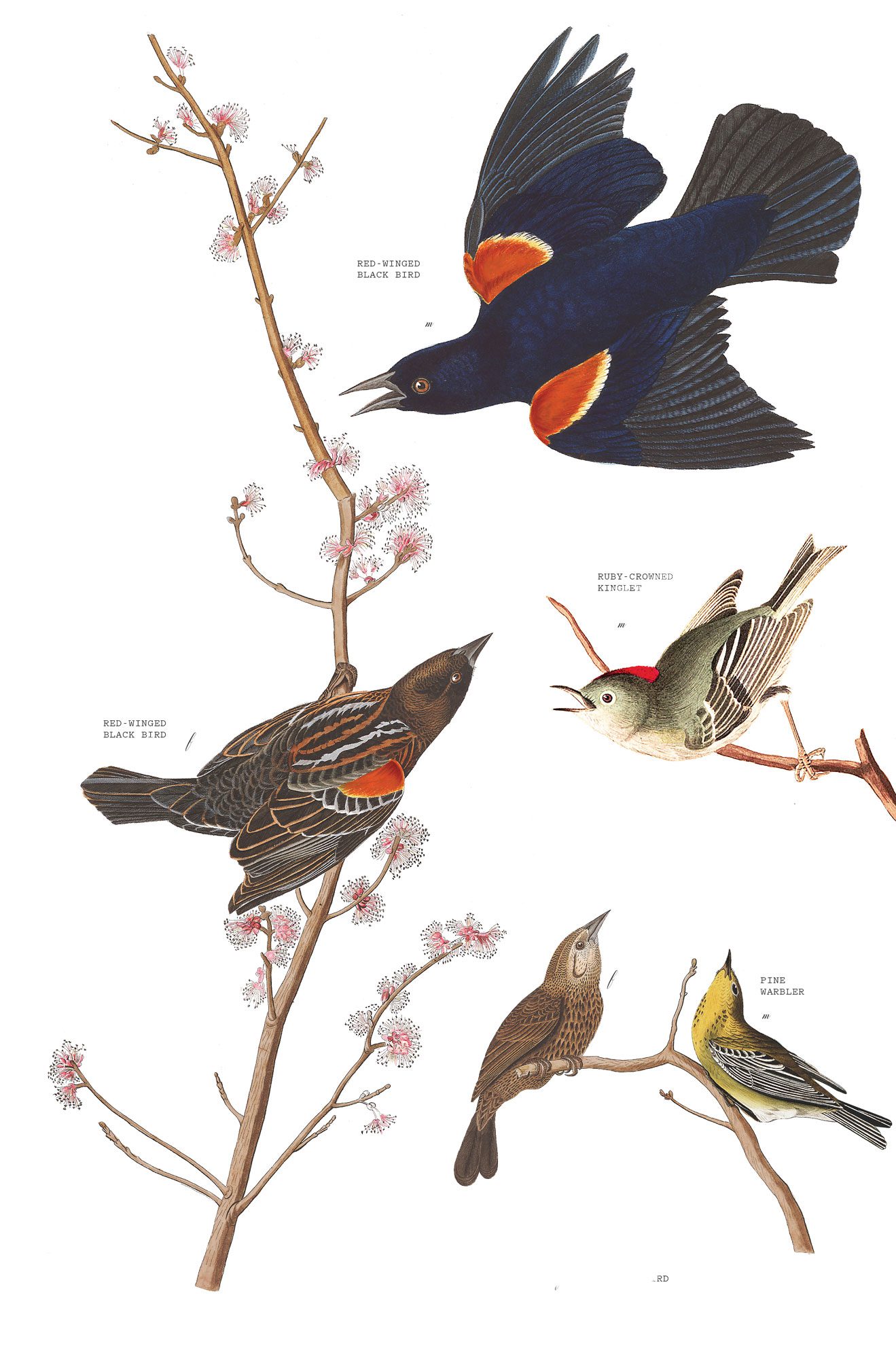 She quietly announces each bird she hears. Red-bellied woodpecker. Pine warbler. Ruby-crowned kinglet. Yellow-rumped warbler (also known as butterbutts). We are patient and some do eventually show themselves. A red-winged blackbird flies by with its dramatic shoulder patch of bright red outlined in yellow contrasting with its black body.