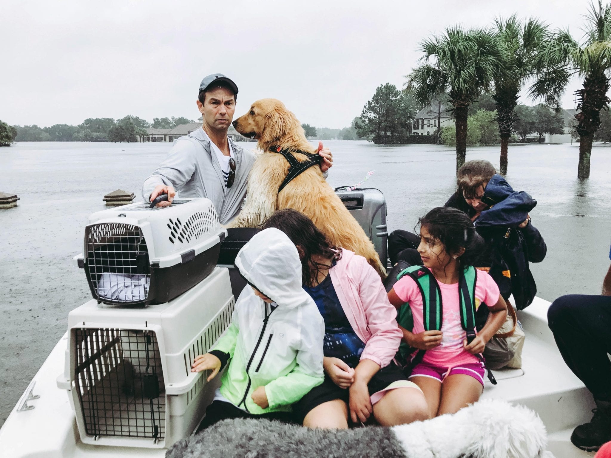 Paul and Silvana carried their son, dog, cat, and luggage to join their neighbors on the small boat. Matteo thought it was all a grand adventure, boating out of the neighborhood—what a novelty in the innocent eyes of a child. Meanwhile, Paul and Silvana tried to stay positive while all around them, Harvey hovered, threatening the lives of Houston residents and promising damage to all in its path. As the rain fell, they looked back at their home in the distance, not knowing when they would return and what they would find when they did.