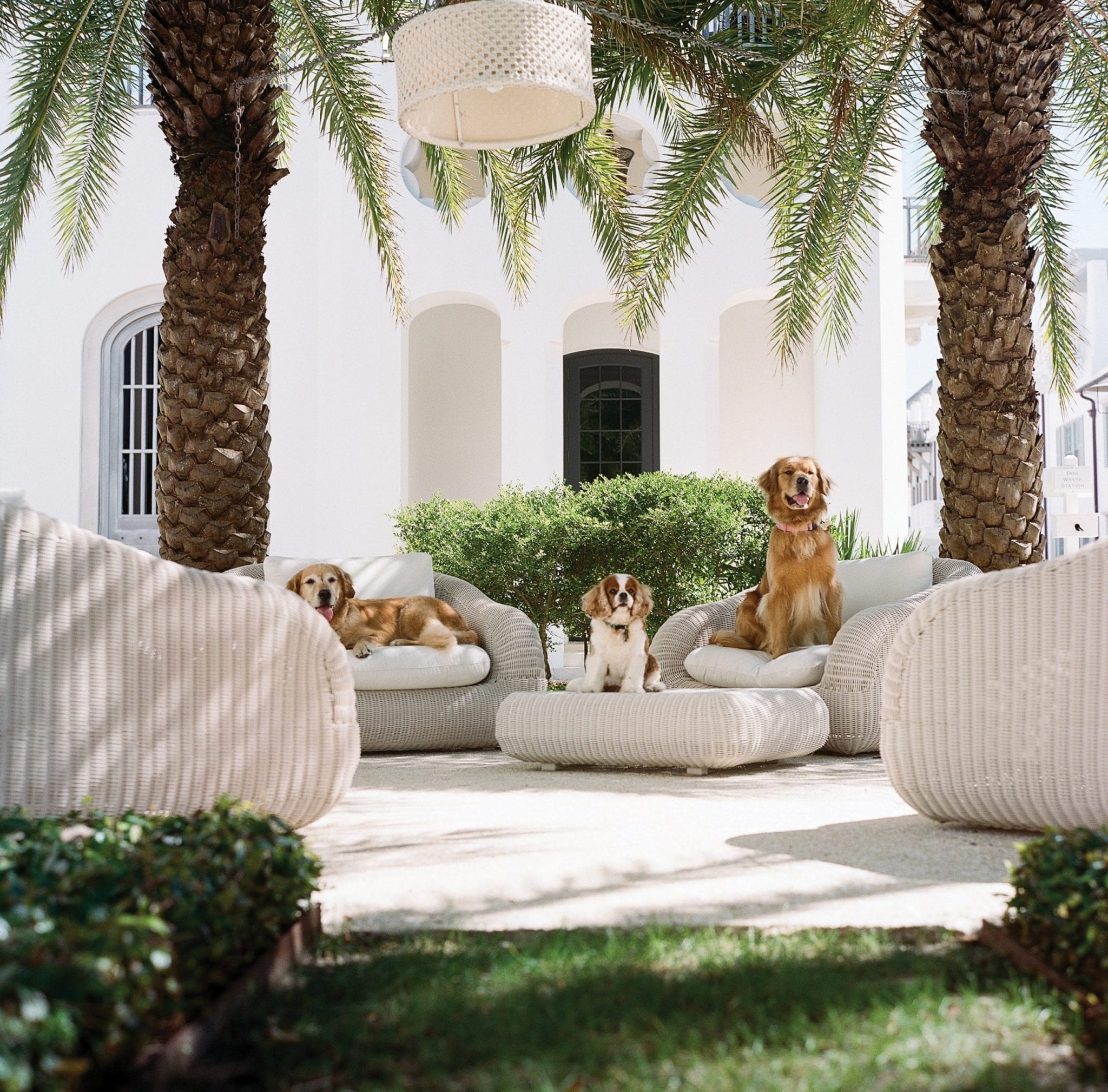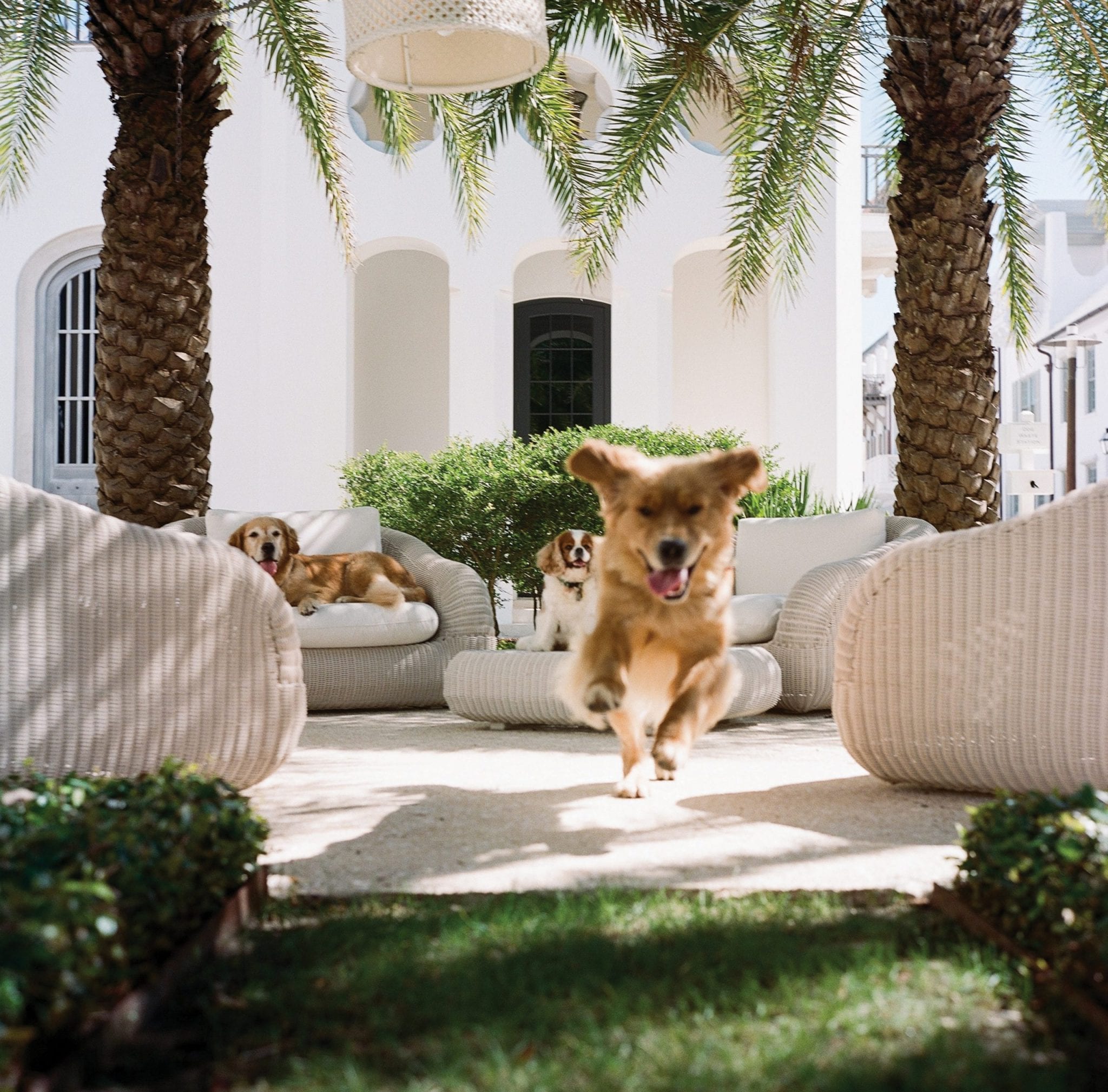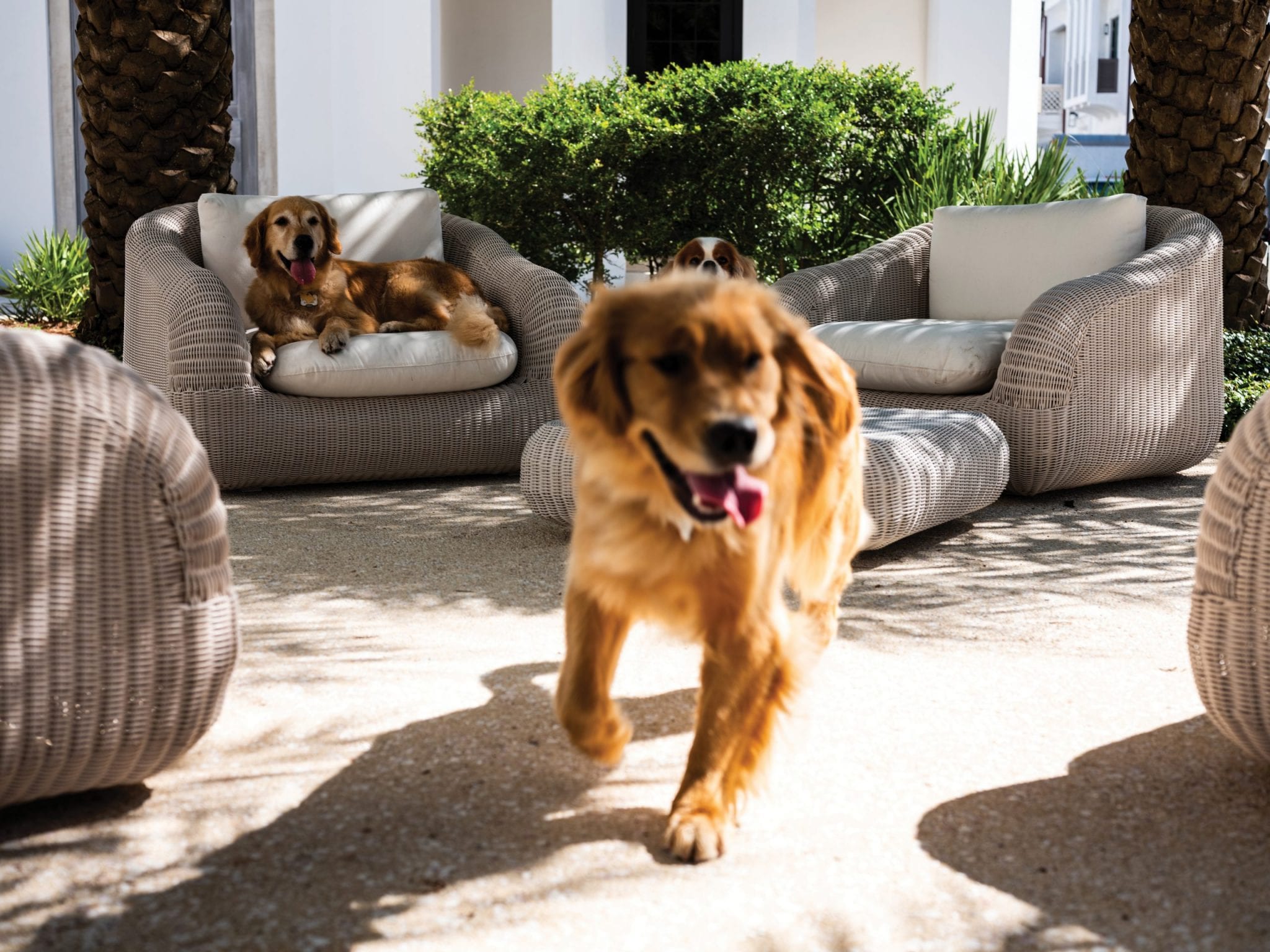 Meet this issue’s Dogs of Alys Beach. Belonging to Laurette and Jim Shaw, and their children Caroline, Annalise, and Elizabeth, the Shaw pups are vibrant travel companions and have always brought smiles to passers-by on the beach and around town. Lexie the Golden Retriever is the faithful bird watcher, Maisy is the very serious and champion-in-her-own-right ball retriever, and Riley has no reason to think he’s anything other than a big, fluffy dog, just like his sisters.