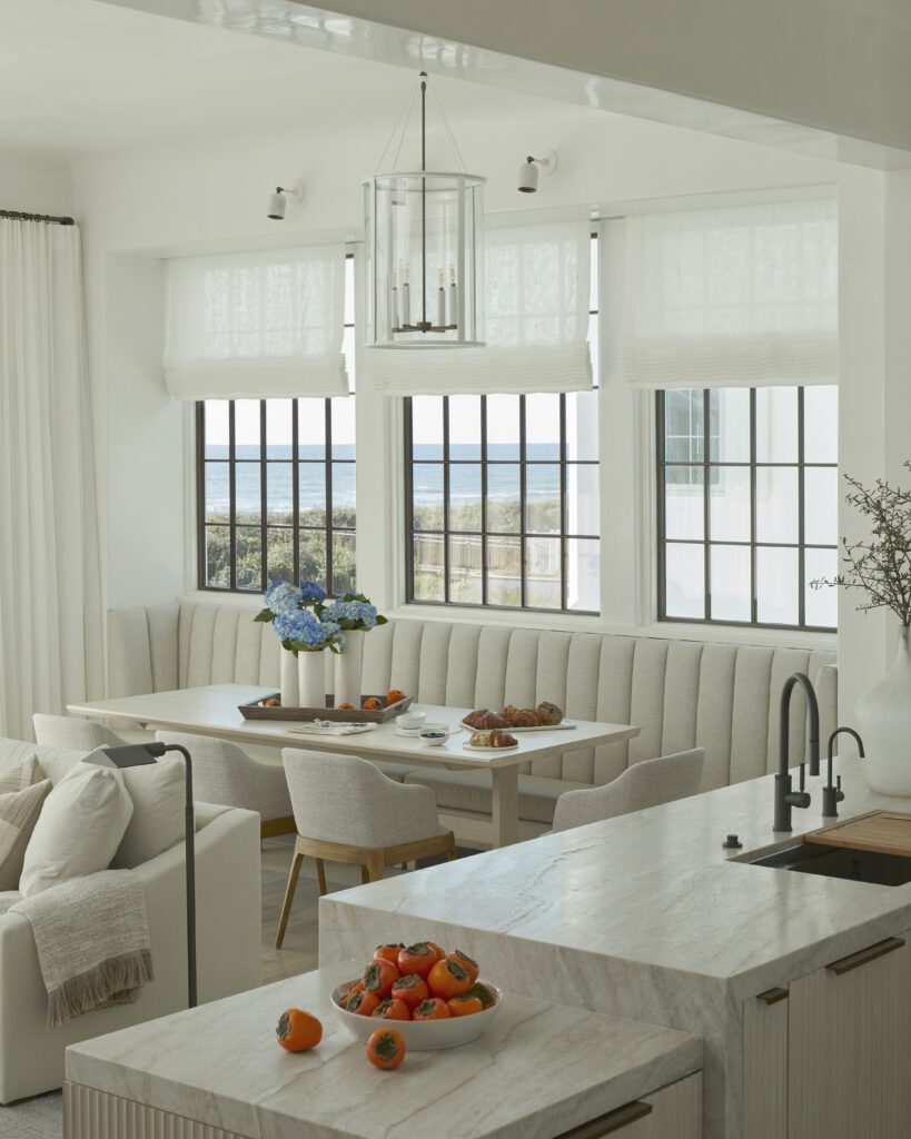 When Tim and Heidi Perry were planning their home at Alys Beach, Heidi could sometimes be found on the beach with her camera. She wanted to capture all the colors unique to the shoreline: the water, the sand and sky, pelicans and other shore birds, anything that might inspire a future design detail. Heidi, an interior designer, didn’t want a house with an overtly beach-house feel, but she loved the idea of subtle references to the natural environment surrounding them.