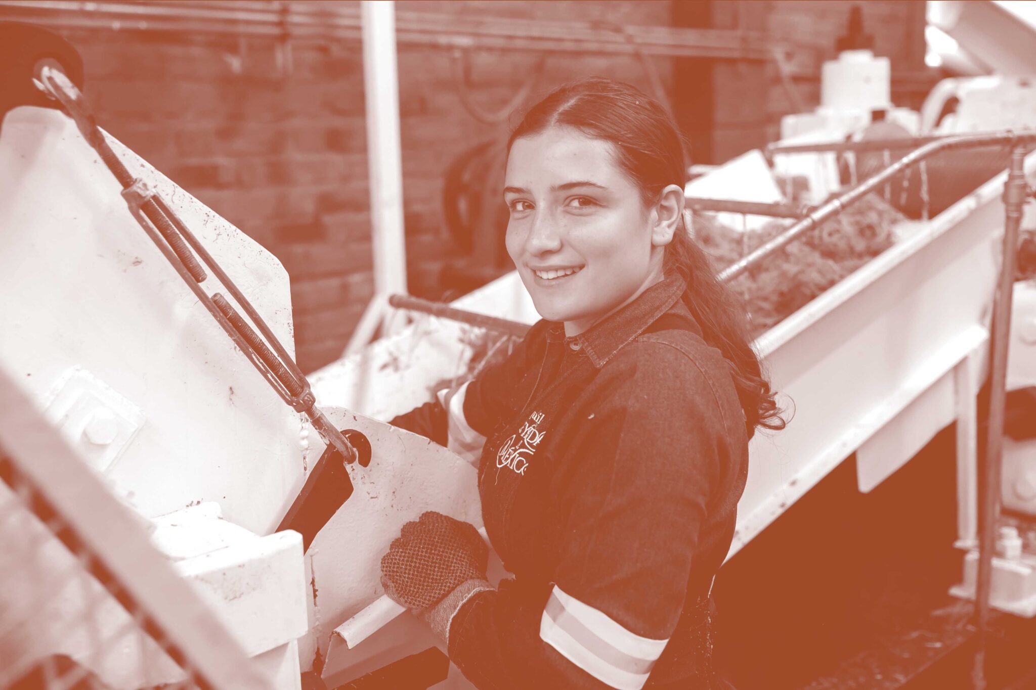 Next, the cooked agave is taken to the mills to press and the must, or sweet nectar, is collected. The women in the factory unload the agave, which weighs between 10 and 20 pounds, and put it onto the conveyor, where it will go through four or five different mills to press and extract the juice. The mills will press again and again until they’ve extracted all of the sugar and what’s left is a dry fiber.
