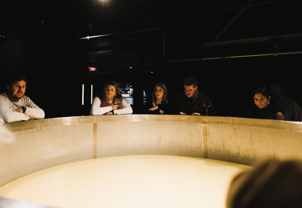 “At Old Forester, we got to see more of the cooperage, which is how they char and store the barrels, so that was really enlightening,” Alexis says. “At Woodford we got to see more of the blending process, their mashes, how the different mashes sit for different times and how the carbon dioxide affects it. We also saw the railroad tracks where they roll these heavy barrels down from the distillery portion to the rick house where they store them. So we really got to see it from start to finish.”