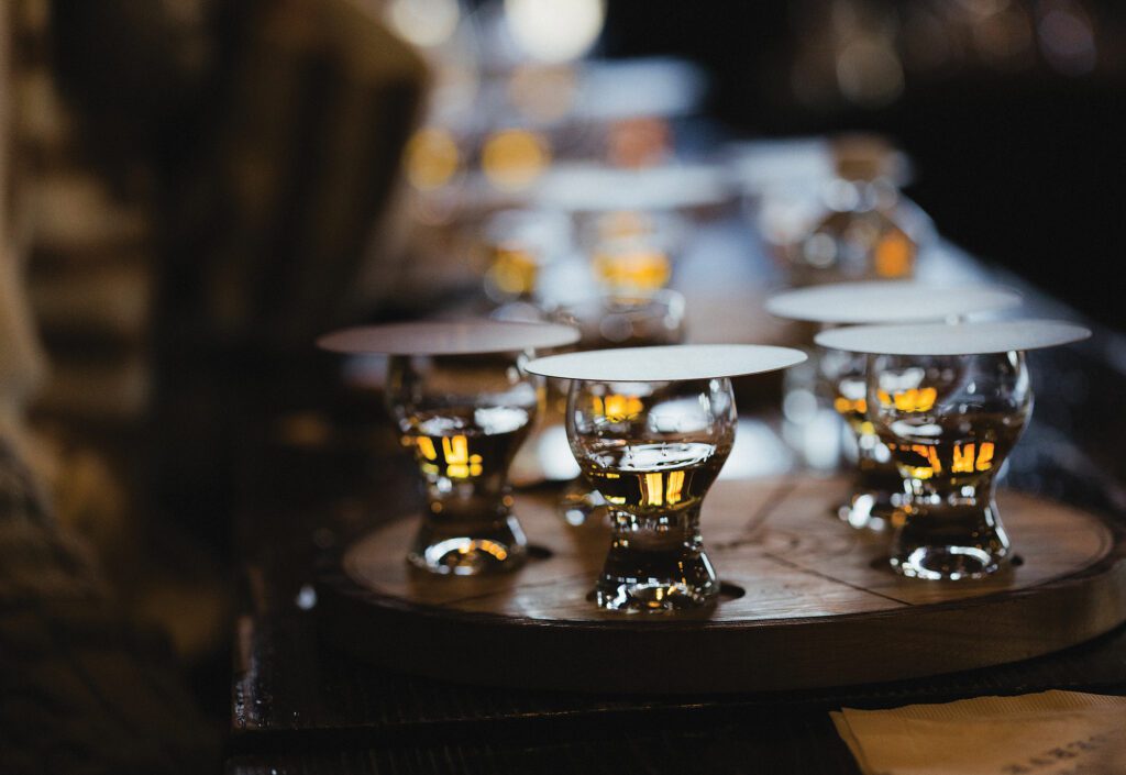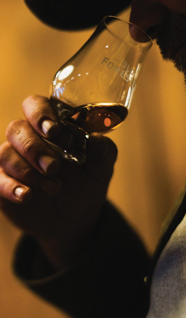 Expanding upon this relationship, Austin and Alexis connected with the famed distillery to arrange a Woodford “personal selection,” which invites clients to visit the historic distillery and taste their craft, small-batch bourbons for a customized barrel selection. “Woodford only releases so many single-barrel bourbons a year,” Austin explains. “It’s limited. Being able to personally select the barrel gives you an even better appreciation of the product.”