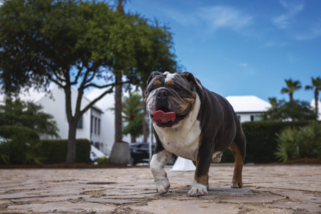 What Rumble may lack in endurance he certainly makes up for in enthusiasm. This five-and-a-half-year-old English bulldog—owned by Holly and Courbin Roush, and their sons Dakota, Drake, and Ethan—can indeed be caught frolicking in the sand at Alys Beach, perhaps only for short bursts. When he’s not enjoying the beaches, he can be found going on walks, people watching from his window, and snoring so loudly he wakes the entire house. His exuberance for life is positively infectious, and can be found reflected in the smiles of the family around him.