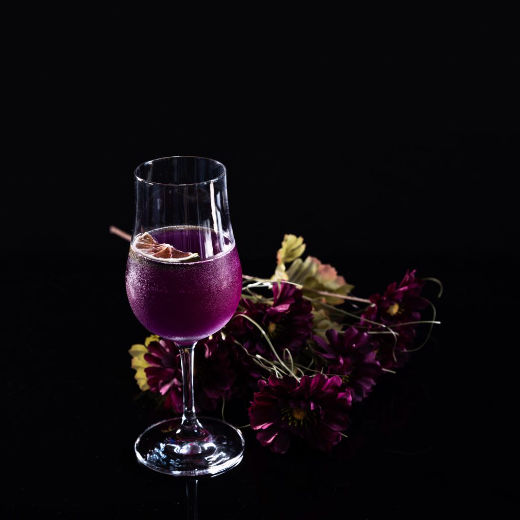 Shake, double strain, top with bubbles in tulip glass, add dehydrated lime for garnish.