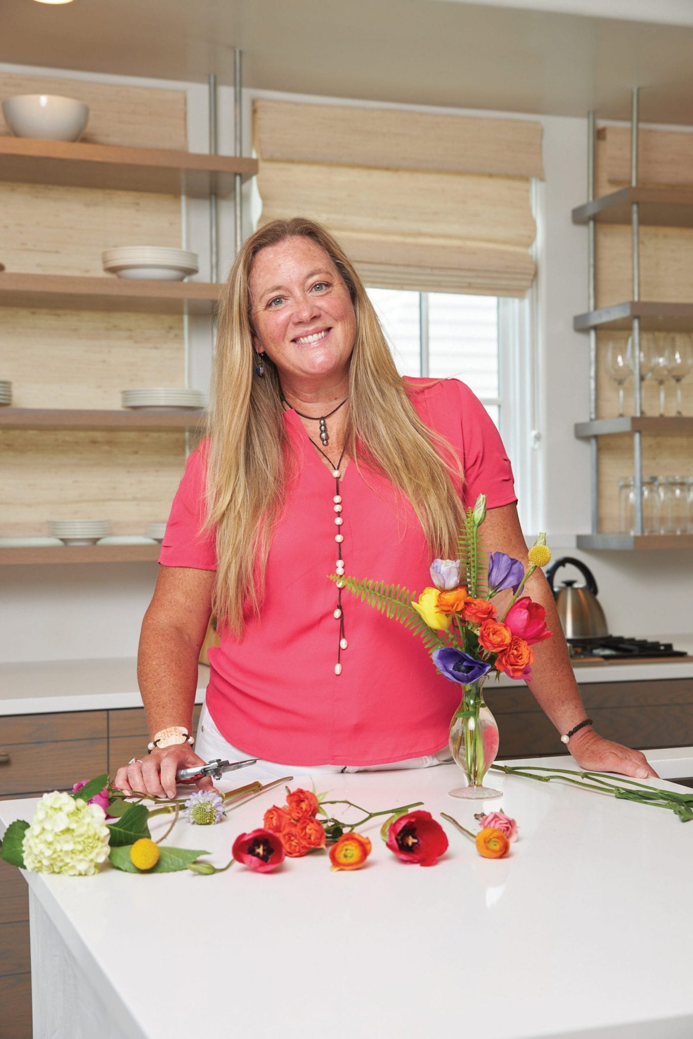 Anyone who has met Grove Fisher—local florist, event designer, and owner of Fisher’s Flowers — knows her personality is as dazzling as her work. With an eclectic career path (history major, high school educator, law student, hospitality specialist, member of the American Forest Alliance team) and inspired by her childhood adoration of her grandmothers’ work in garden clubs and church alter guilds, Fisher has built a vibrant business along the Florida Gulf Coast. She brings beauty to all she touches and adds an uplifting spirit to both home and venue alike. It is during unprecedented times like these, when all news feels heavy, when the ugly in the world might be more apparent than the beauty, that Fisher’s bright approach to life is utterly effective in making the world a better place—one arrangement at a time.