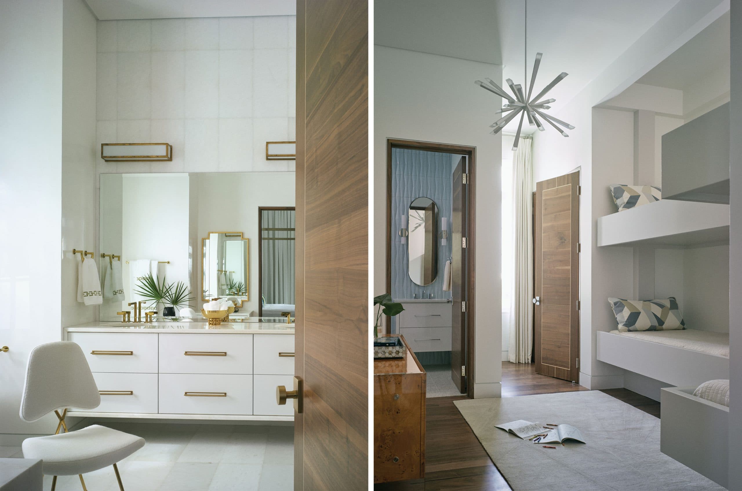 Cindy says that while modern might be the prevailing look of the home, there is also a happy co-existence of subtly different styles in the pieces they chose. They also included pieces that had been in their Orange Beach home, because they fit the couple’s personalities so well. They loved their vellum cocktail table with brass accents; a beautiful goatskin credenza; and an Eames chair and ottoman that Mike discovered years ago, so Cindy helped them find fresh placement within the design of their new Alys home.