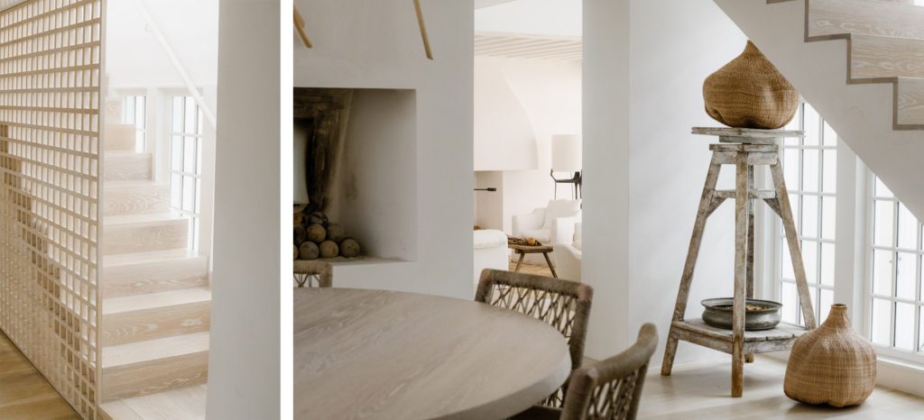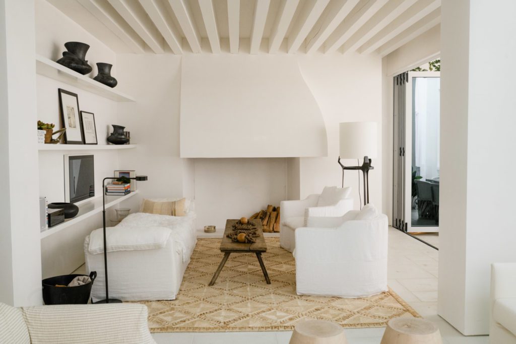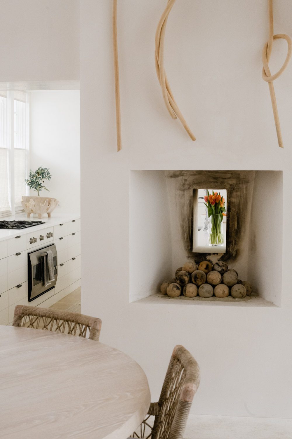 “A fireplace can be as simple as a niche,” Bill says, explaining all the fireplaces are plastered white. “Honestly, I get tired of them looking like black holes. It seems like the last thing you would do is paint your fireplace white, but I love it. It’s so minimalist…the most elemental thing you can do.”