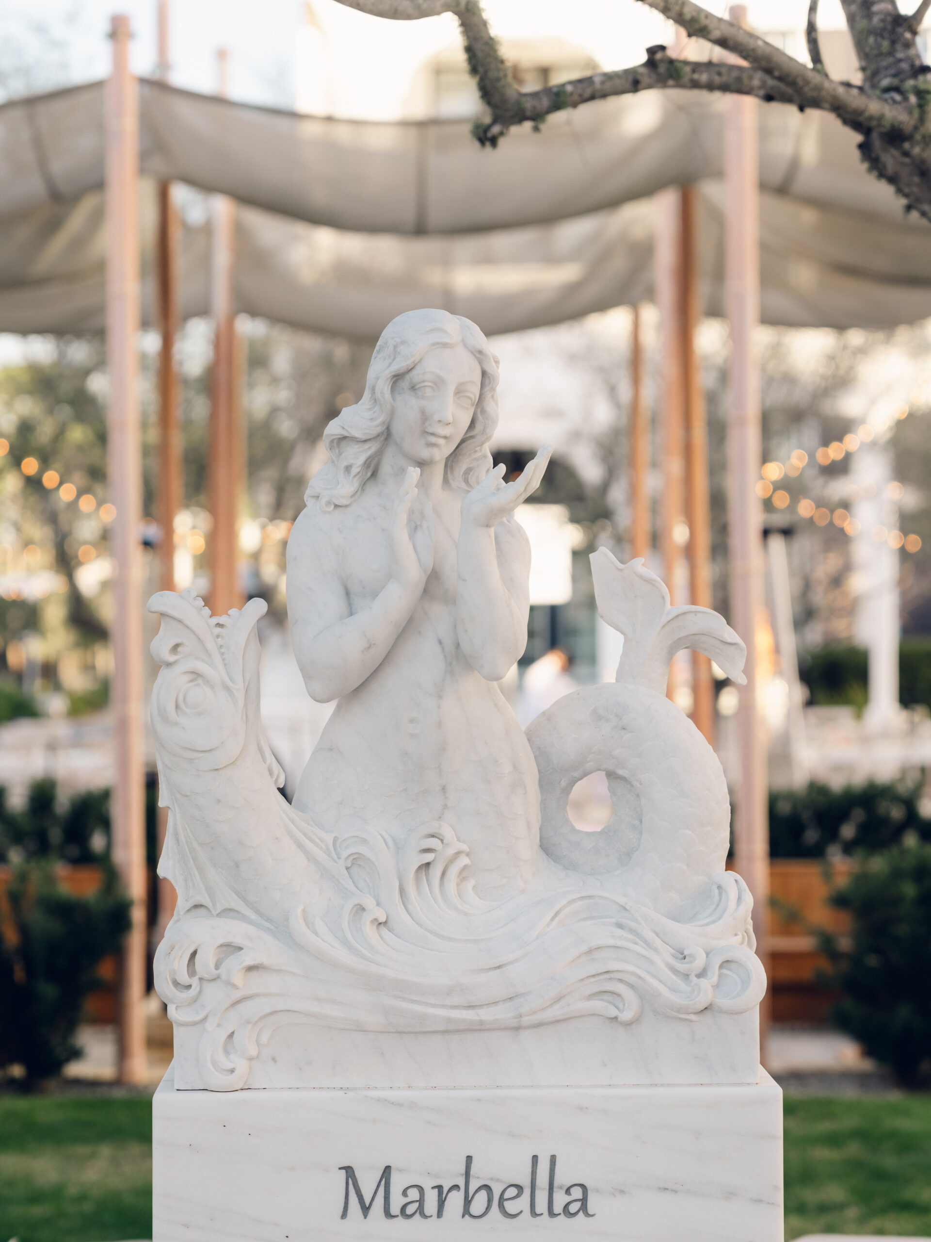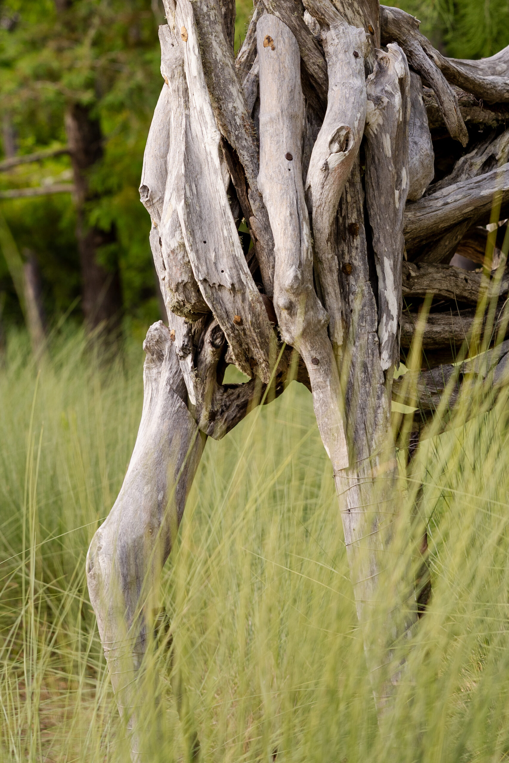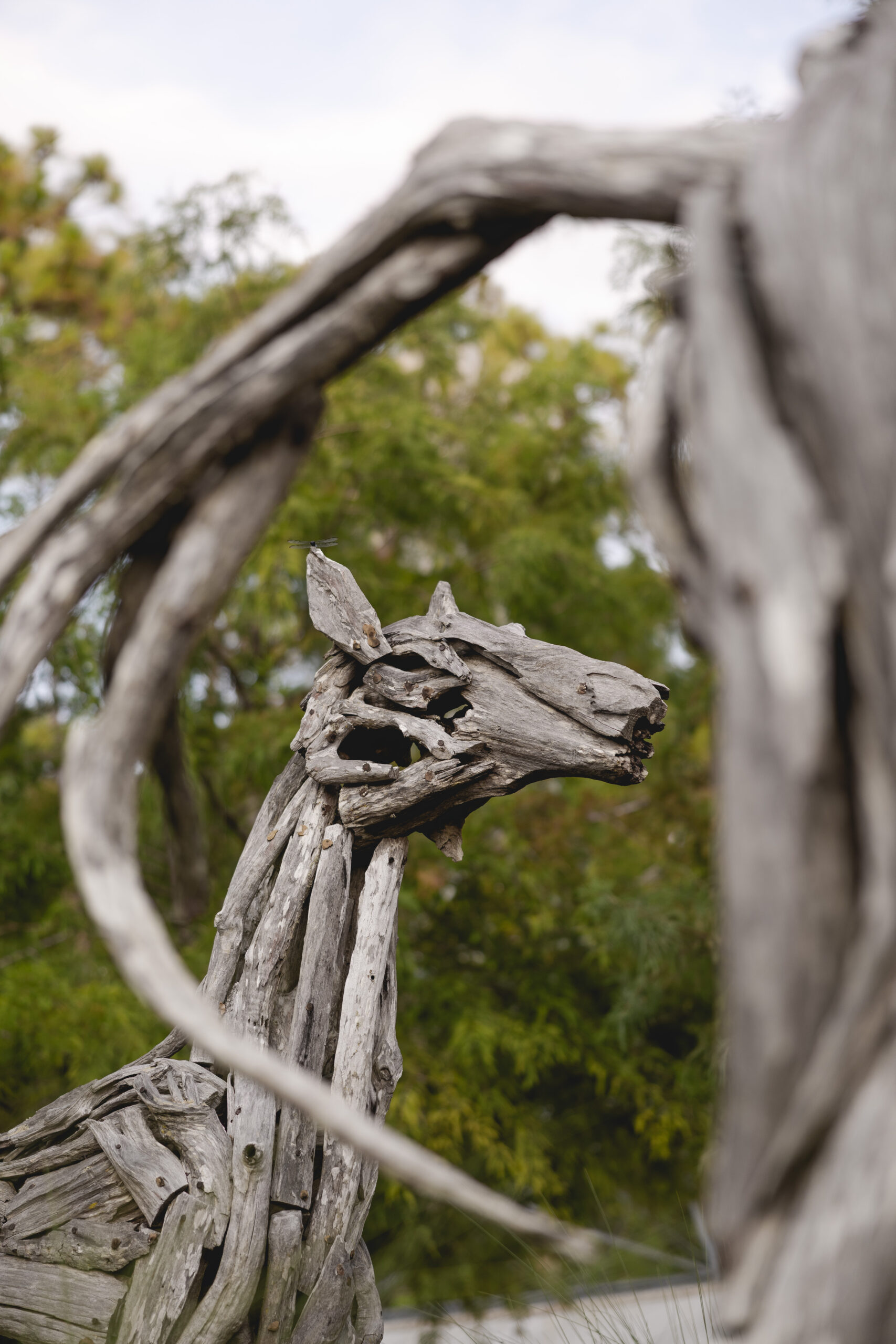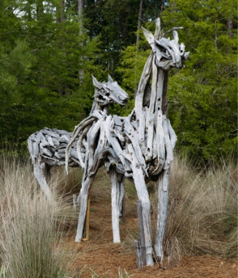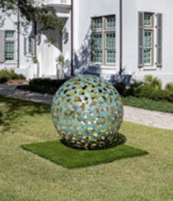 The teak wood sculptures compliment the natural elements of the Gulf Coast’s salty breezes and sunshine.