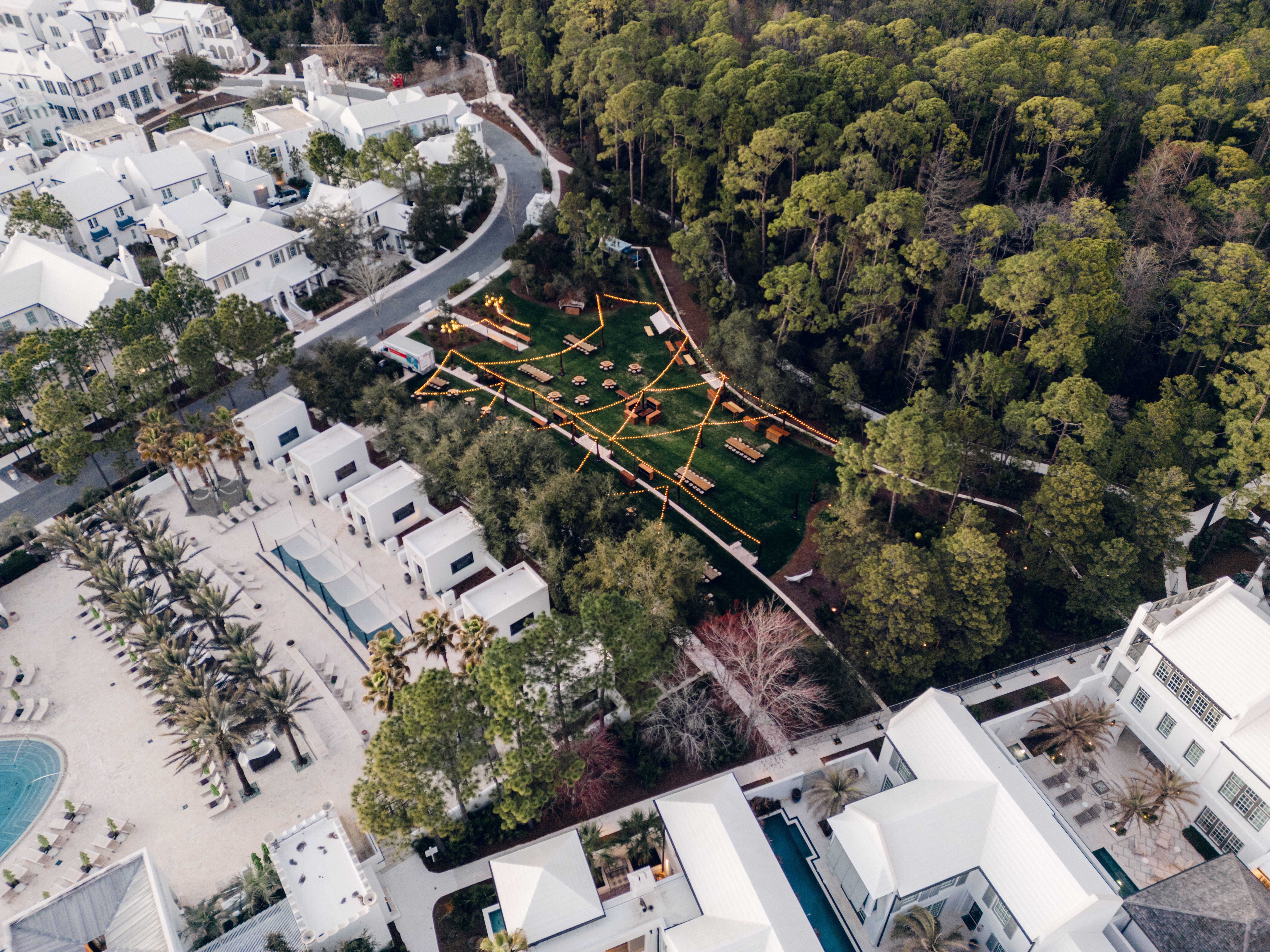 Central Park’s lush, rolling lawn and local flora create a wilder look and feel to the community, but offers a welcoming space gather or get away. The area houses many of the town’s signature events, and blends seamlessly with Alys Beach’s Nature Preserve and Caliza Pool ambiance.