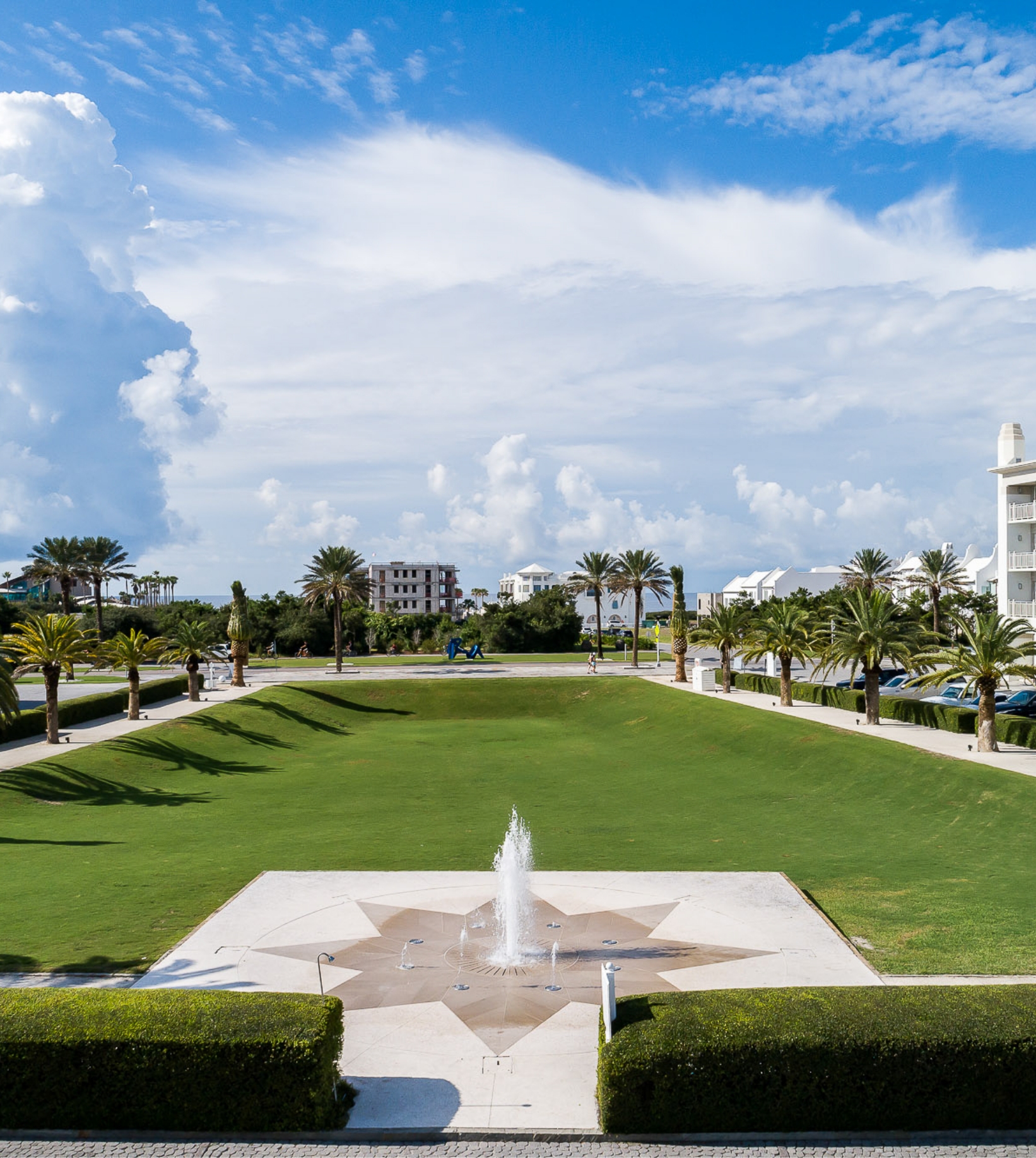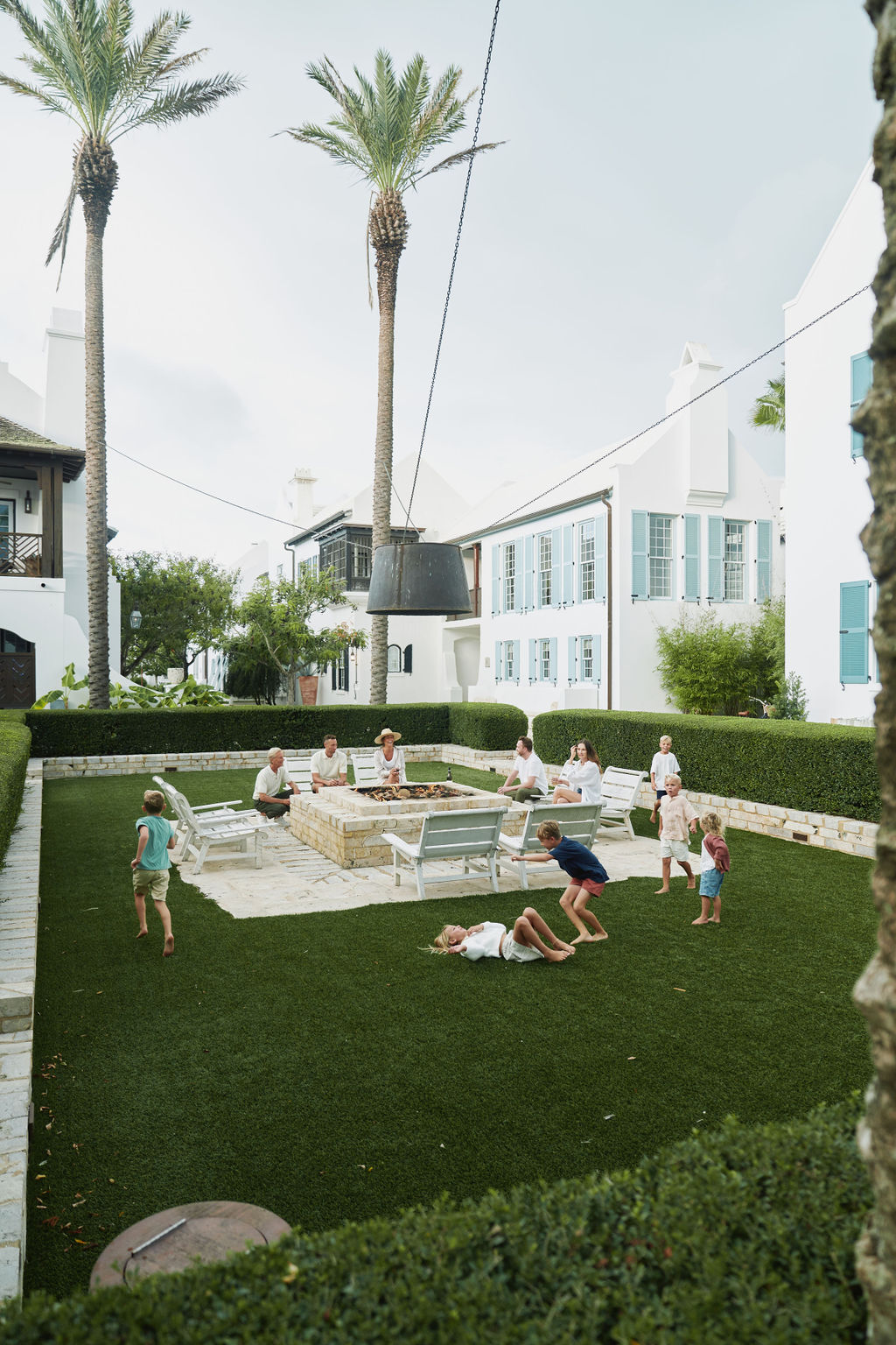 In the tradition of 18th Century English landscape gardens, Firepit Park’s sunken core features a formal green that surrounds a shellstone fire pit, and has become one of Alys Beach’s most favored and intimate civic spaces.
