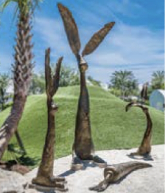 These large scale bronze sculptures of bunnies and a carrot bring playful whimsy to Turtle Bale Pedestrian Path.