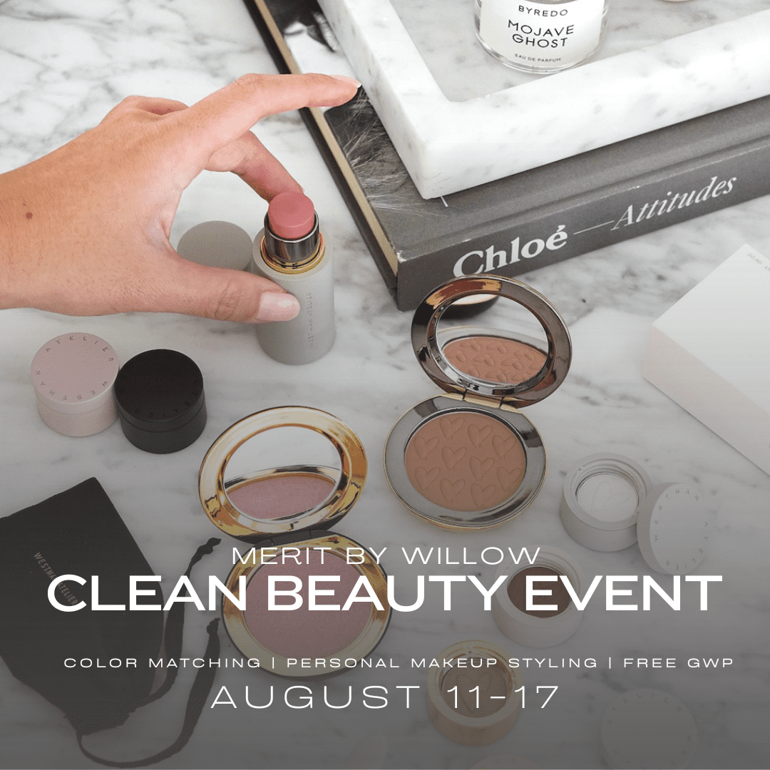 Experience effortless, skin-loving beauty with one-on-one color matching and personal makeup styling from the team at MERIT by Willow. Guests who spend $250 or more will receive an exclusive clean beauty gift with purchase. Discover brands like Westman Atelier, Augustinus Bader, Vintner's Daughter, GOOP and more.