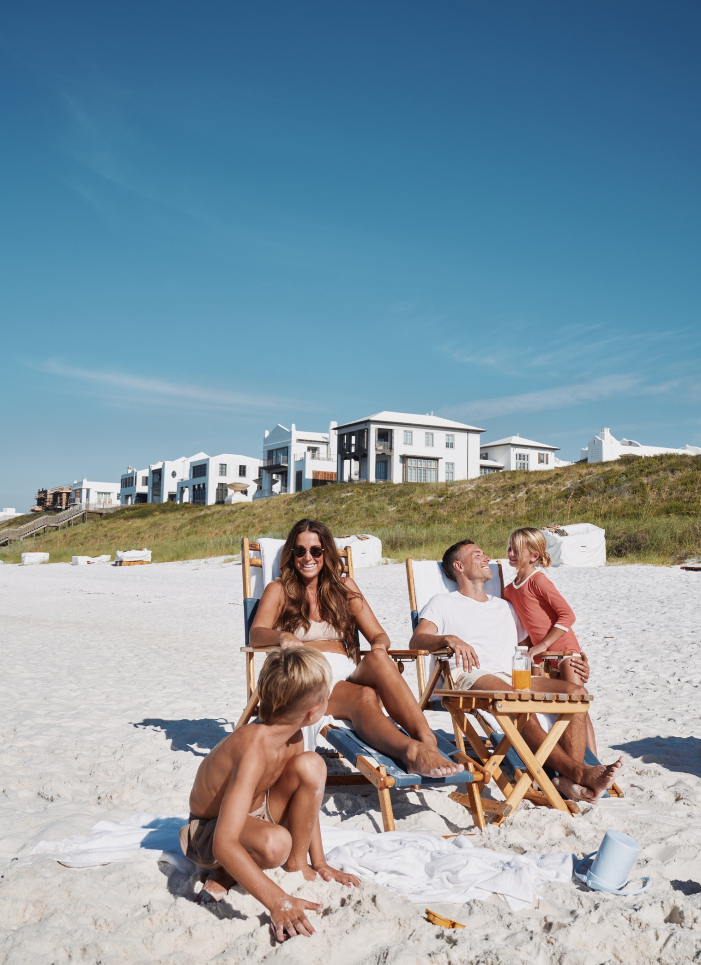 Alys Beach’s private 1,500-foot stretch of the Emerald Coast offers exclusive beach access, with options for beach setups, recreation opportunities, bonfires, and direct food and beverage delivery through private dune walkovers.