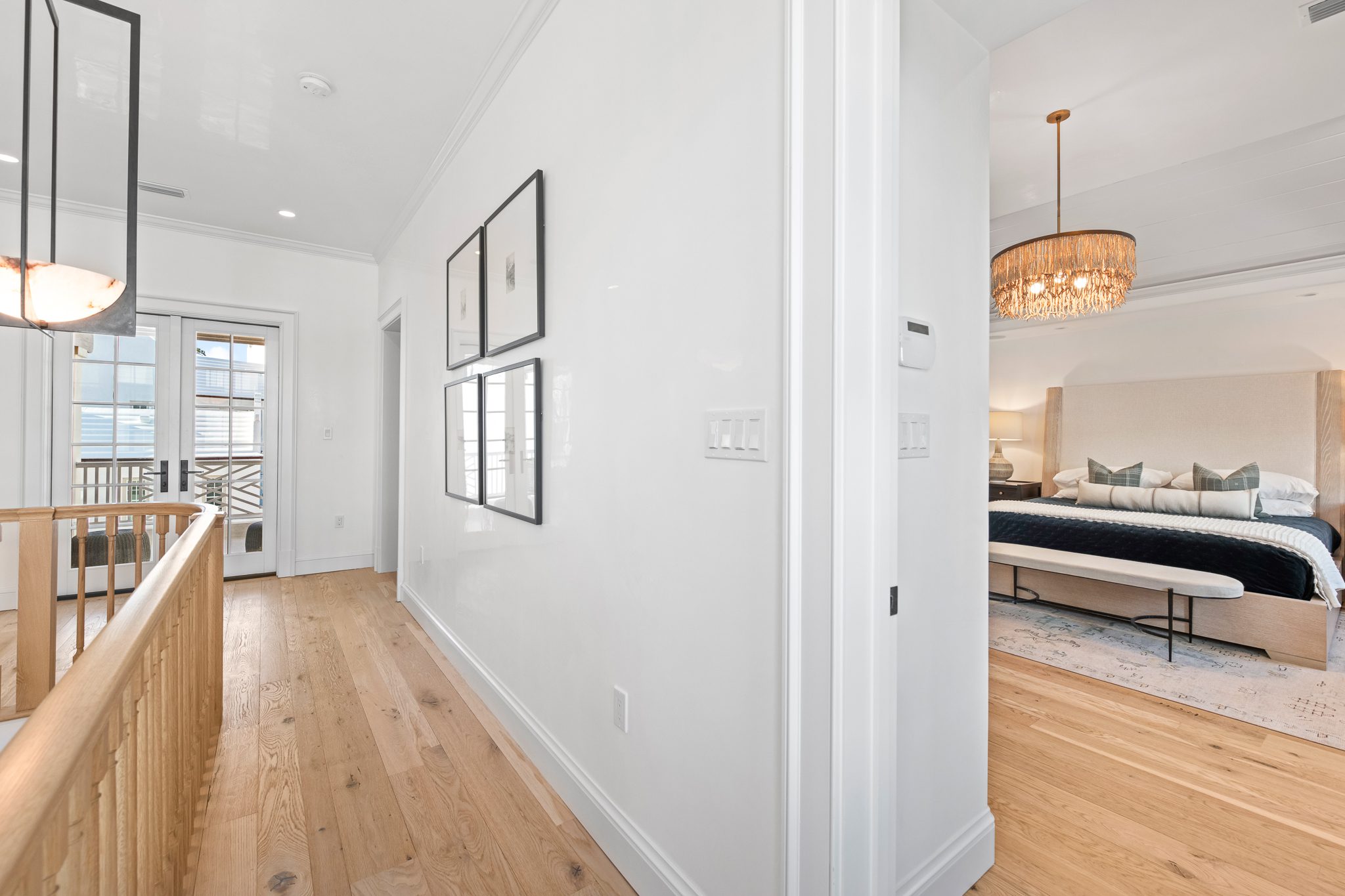 As you enter, you’ll be greeted by a beautifully designed courtyard that invites you to enjoy the sunshine, complemented by an outdoor living area featuring a Summer Kitchen, ideal for entertaining or casual family meals. The first floor includes two single-car garages, providing ample space for vehicles and beach accessories. The heart of the home is a chef’s dream kitchen outfitted with Thermador appliances, seamlessly connected to the dining and living areas. The home’s elegant fireplace in the living room, creates warmth and charm, while a luxurious primary bedroom on the first floor ensures ease and accessibility, complete with a beautifully appointed en suite bath.
