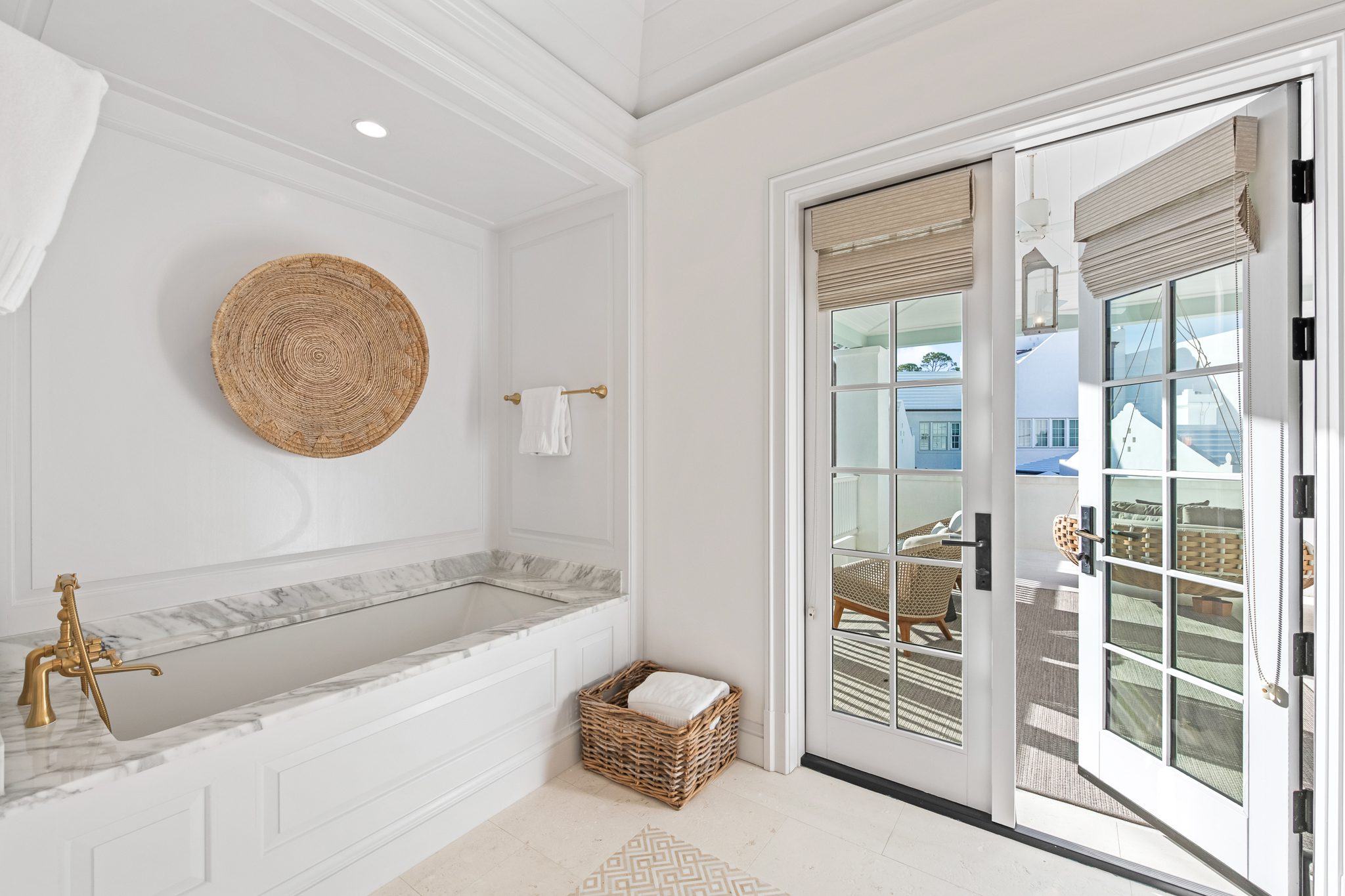 The home showcases exquisite Venetian plaster walls, while the first floor is adorned with rice white Fire Rock stone pavers that transition beautifully to white oak wood flooring as you ascend the stairs. This property effortlessly blends elegance with modern comforts, making it a dream home in the highly sought-after town of Alys Beach.