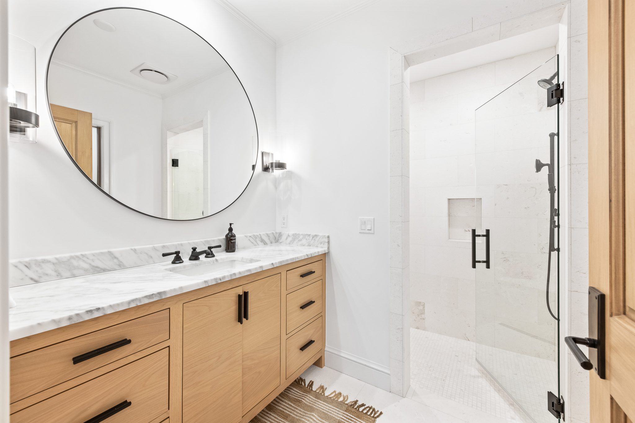 Ascend to the second floor where the main primary bedroom awaits, featuring two spacious closets and a breathtaking bathroom that opens to a large covered porch—perfect for morning coffee or evening sunsets. Two generously sized guest bedrooms each feature en suite bathrooms, providing privacy and comfort. An additional outdoor living space with a wet bar caters to guests, making it an ideal gathering spot.