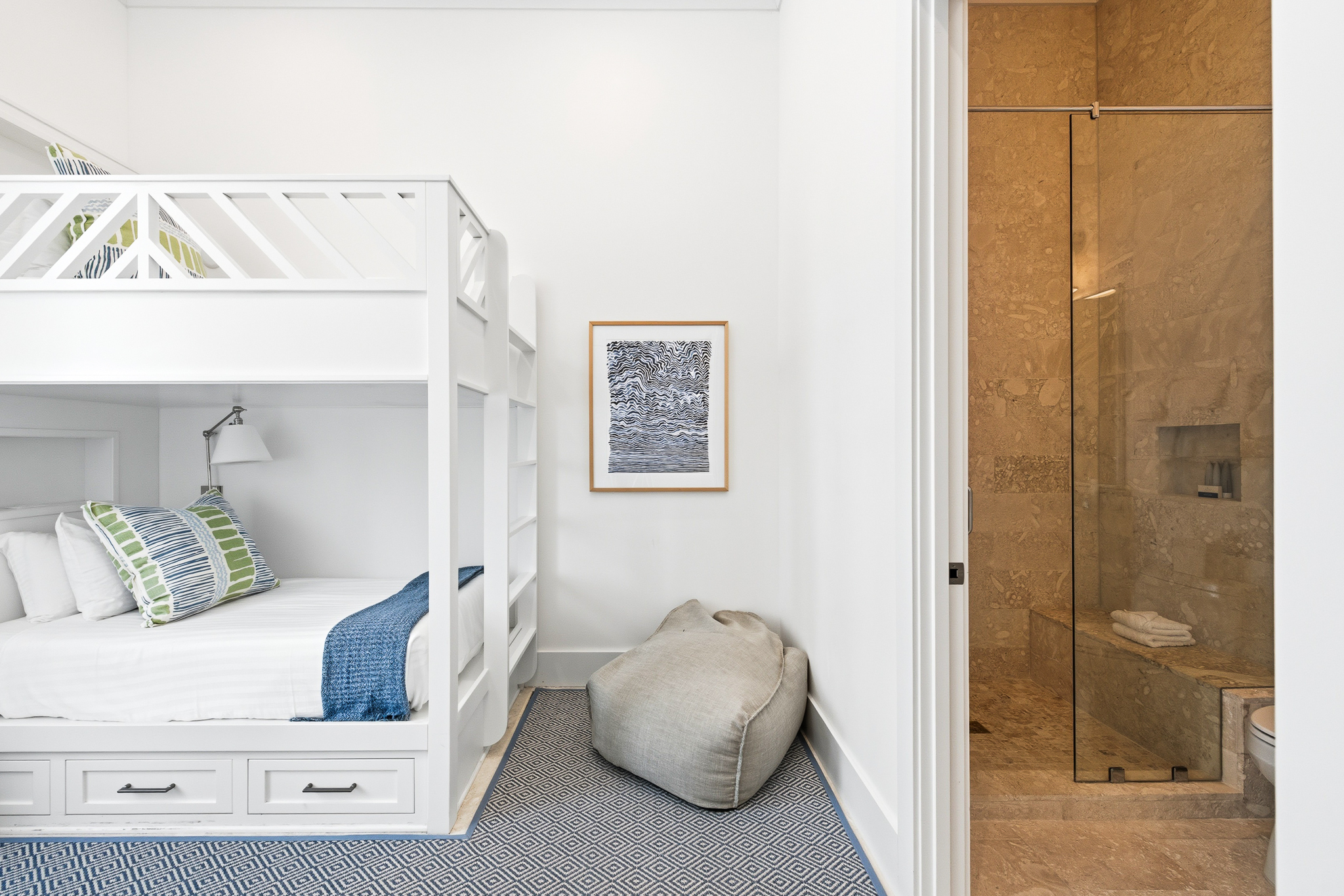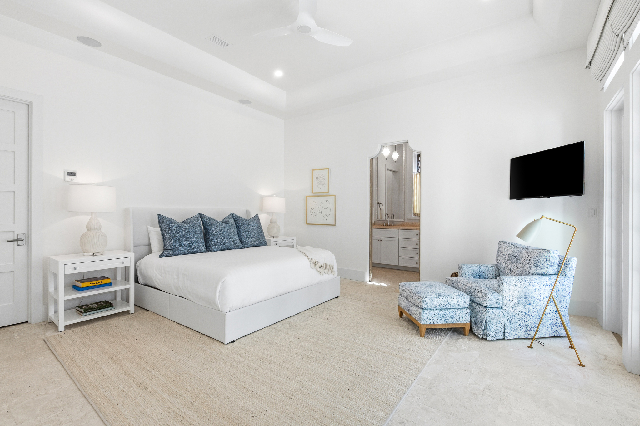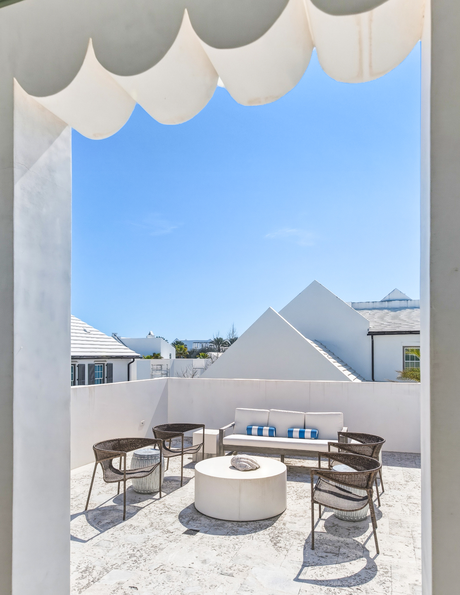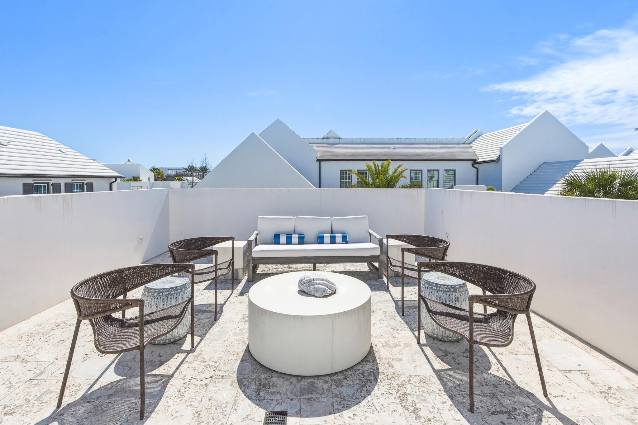 Spanning 3,773 square feet, this home features two elegantly appointed bedrooms on the main level, including one of the two lavish primary suites. The second primary suite, located on the upper level, opens to a breathtaking rooftop terrace—an ideal setting for starlit entertaining.