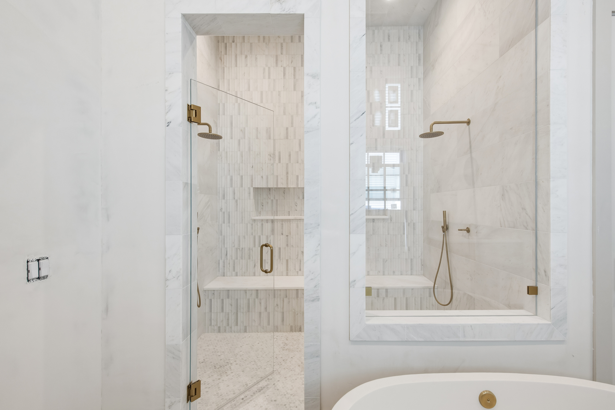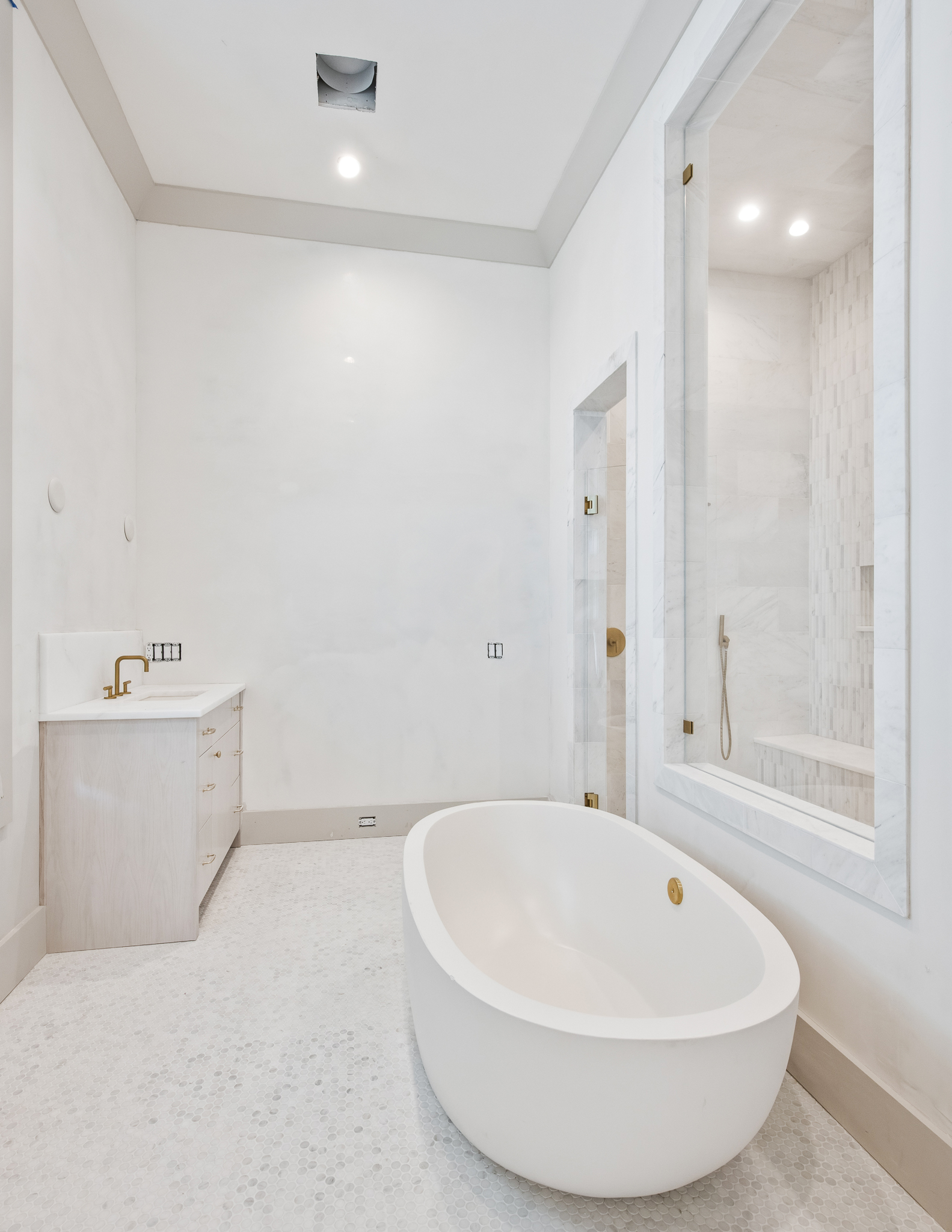 The first floor welcomes you with three exquisite guest suites that open directly to a private courtyard, complete with a shimmering swimming pool, sun terrace, and exterior powder room with shower—perfect for effortless outdoor entertaining. Ascend to the second floor, where the layout is nothing short of extraordinary. Here, you’ll find a generous primary suite that exudes luxury, featuring a lavish dual vanity bathroom adorned with beautiful marble tile and a spacious shower, complemented by two expansive closets.