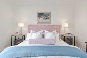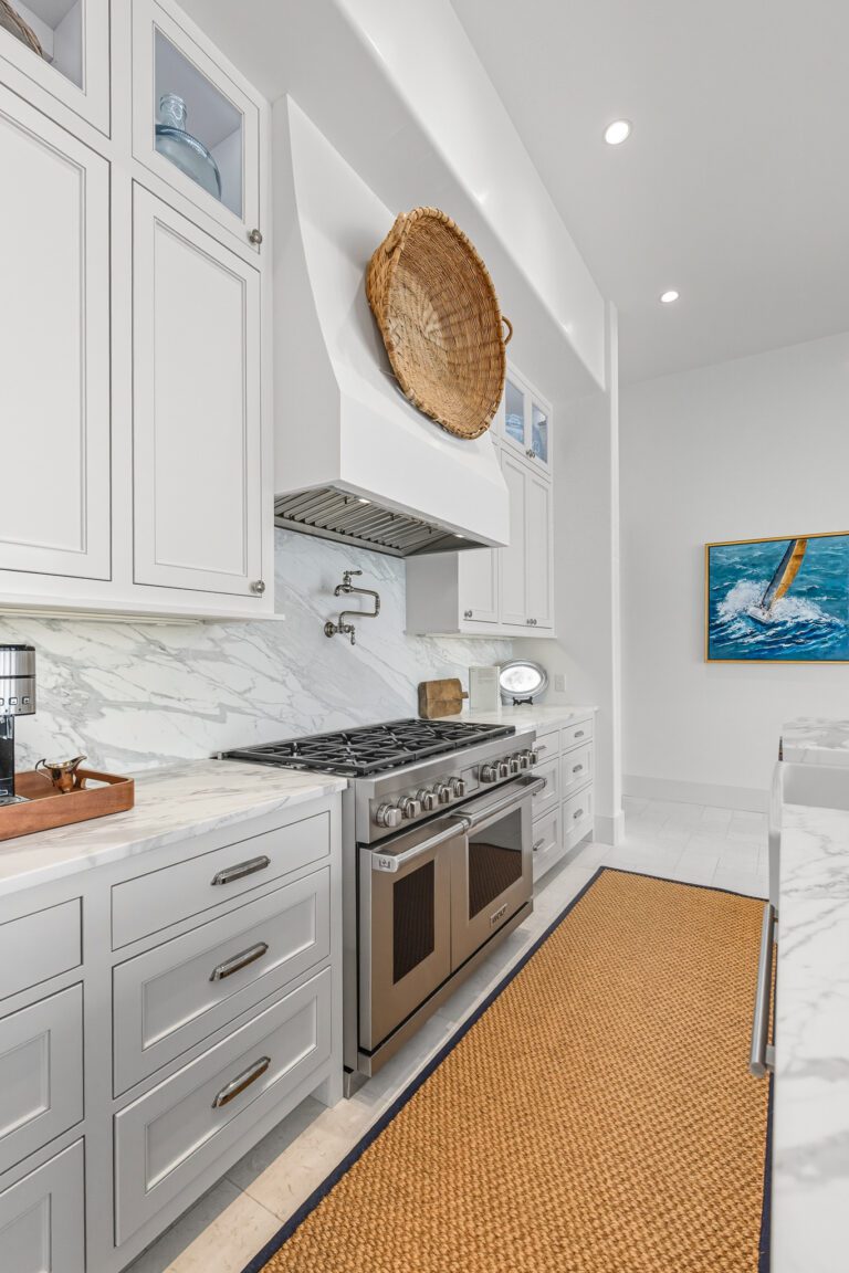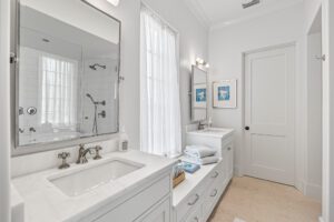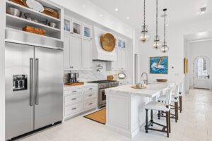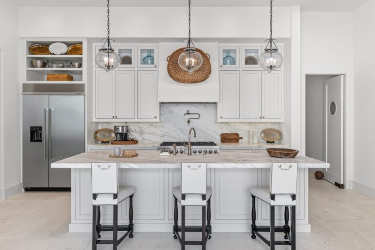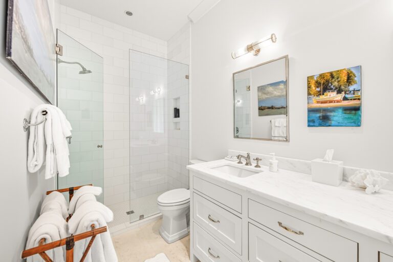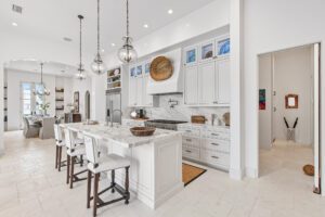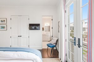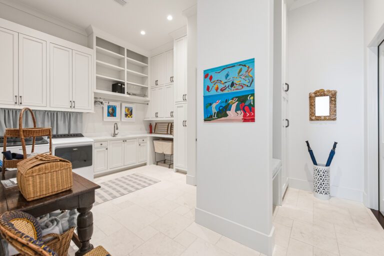 On the second floor, discover three generously sized guest bedrooms, two of which serve as secondary primary suites, outfitted with Shellstone flooring and marble countertops. Each guest will enjoy a luxurious stay in these beautifully appointed rooms.