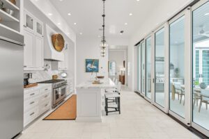 Additional highlights of 195 N. Charles include a two-car garage, a convenient mudroom, and a large laundry room. The centerpiece of this home is the stunning courtyard pool area, complete with a dining loggia and a summer kitchen featuring a Wolf grill, beverage center, and icemaker.